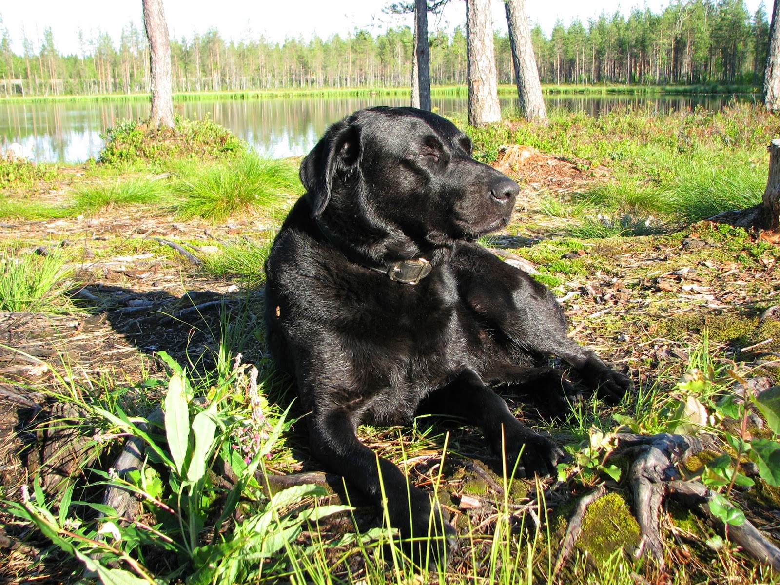 Vietettiin myös yksi viikonloppu metsässä, josta Nala kyllä nautti paitsi öisin, kun oli niitä sääskiä. Hotellina toimi siis metsä ja saimme pediksemme mättään. Itse olin melko turvassa makuupussin sisällä, mutta Nalakin kyllä melko nopeasti ymmärsi pysyä paikoillaan, kun asettelin koko koiran piiloon kostean pyyhkeen alle, sääskiä piiloon. Reppureissu metsässä teki kyllä molemmille ihan hyvää, ja kahden metsässä vietetyn yön jälkeen plus en tiedä monenko kilometrin talsimisen jälkeen oli Nalakin aika sippi. Sääkin oli melko lämmin vaeltamiseen, kun mittari näytti matkan varrella +24, mutta matkalla oli onneksi paljon ojia ja lampia, joissa sekä koira että omistaja sai vähän vilvoitella.